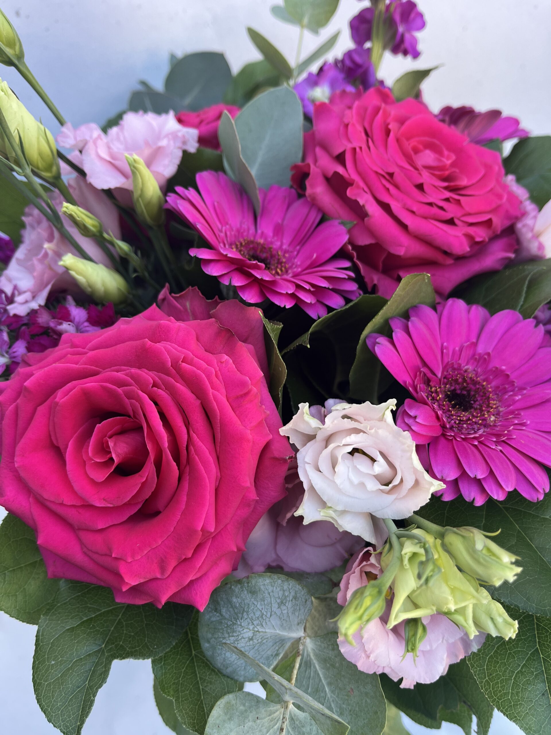 Le Bouquet Rond Fuchsia de Créa’Flore est une composition florale lumineuse et chaleureuse, composée de teintes fuchsia.