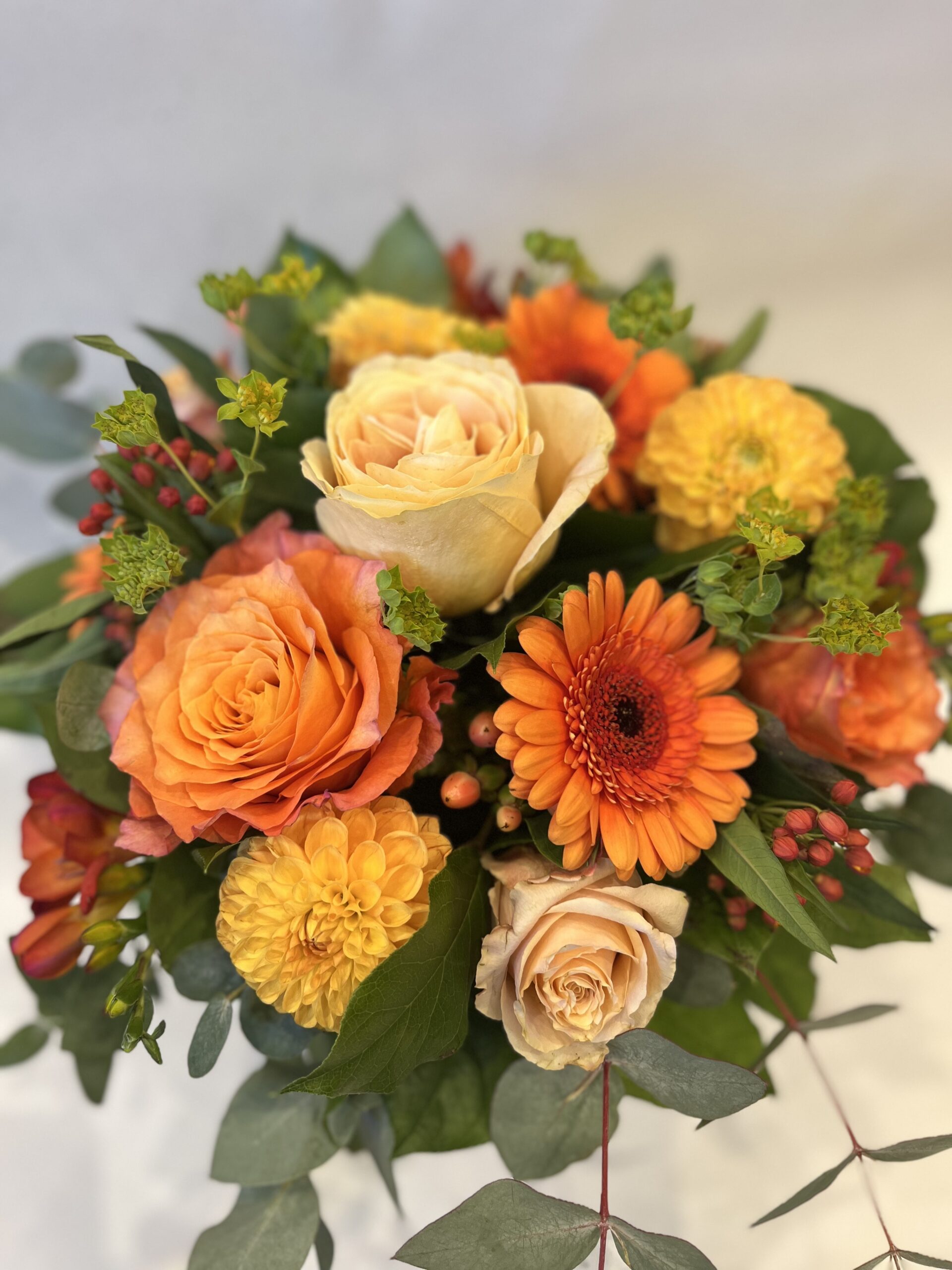 - Format : bouquet rond compact (hauteur ≈ 30-40 cm)