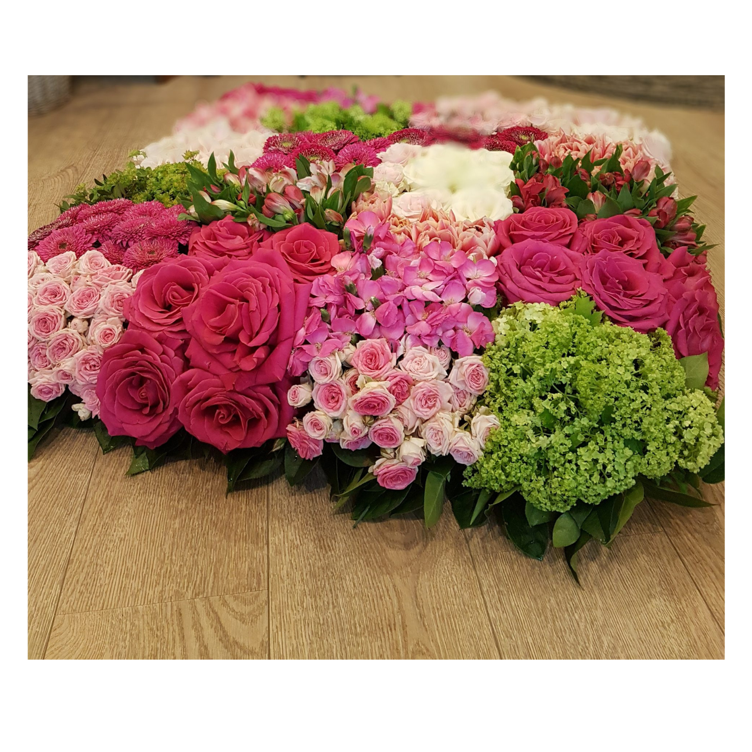 Il se compose de roses et autres fleurs fraîches de saison, sélectionnées pour leur éclat et leur fraîcheur.