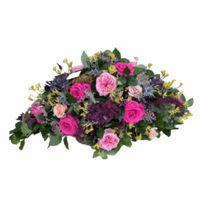 Le Coussin Poudré de Créa’Flore est une composition florale délicate, mêlant des teintes poudrées et pastel pour un hommage tout en douceur et élégance.