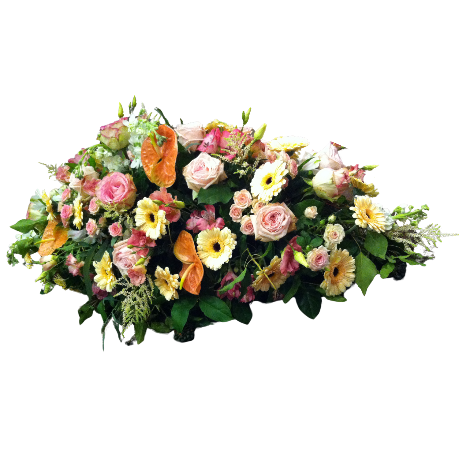 Le Dessus de Cercueil Tangerine de Créa’Flore est une composition florale de deuil élégante et lumineuse, pensée pour accompagner le défunt avec douceur et respect.